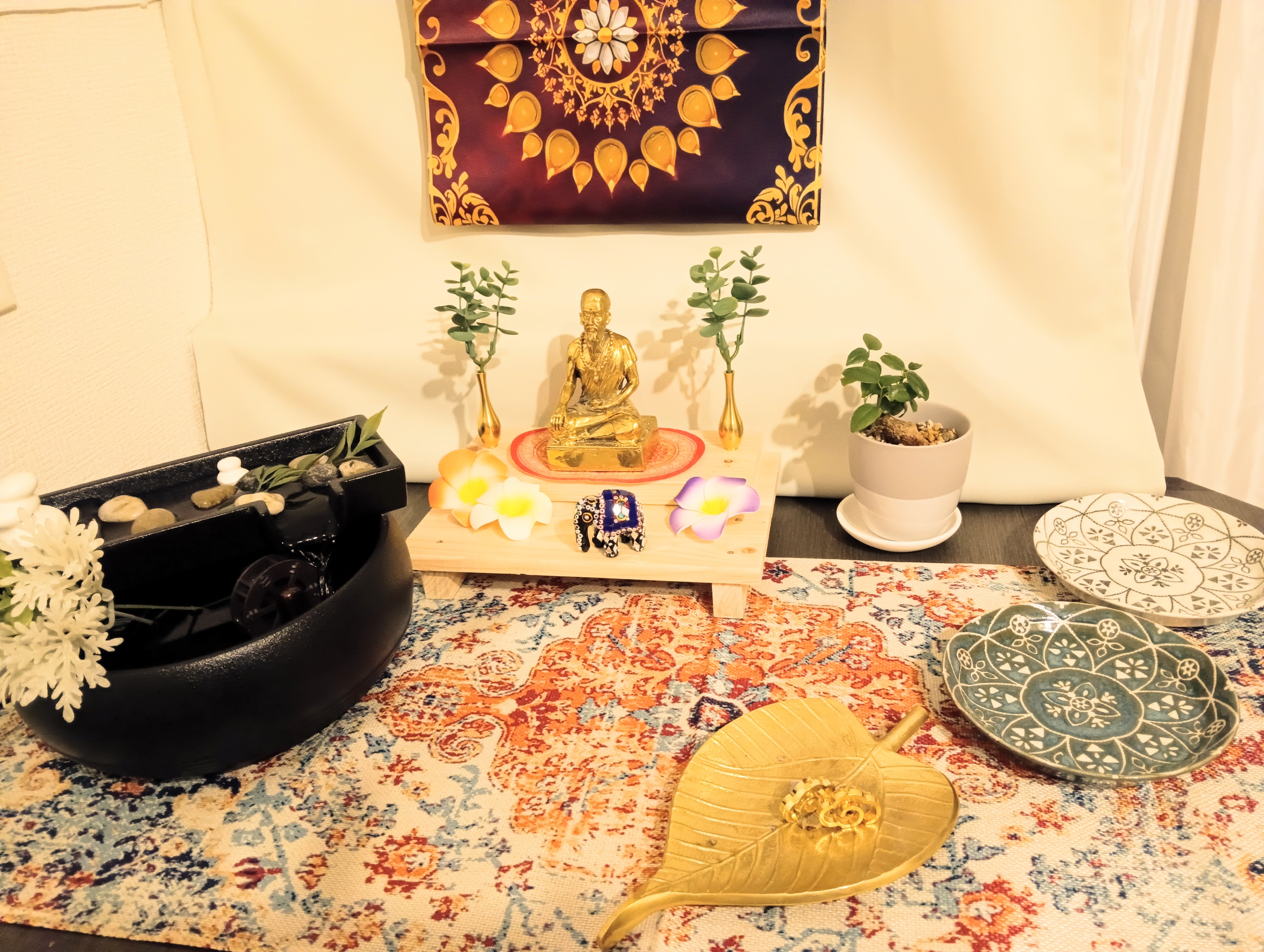 タイ古式の創始者の仏像です。日々良い施術ができますように、祈りと感謝を込めて祀っています♪